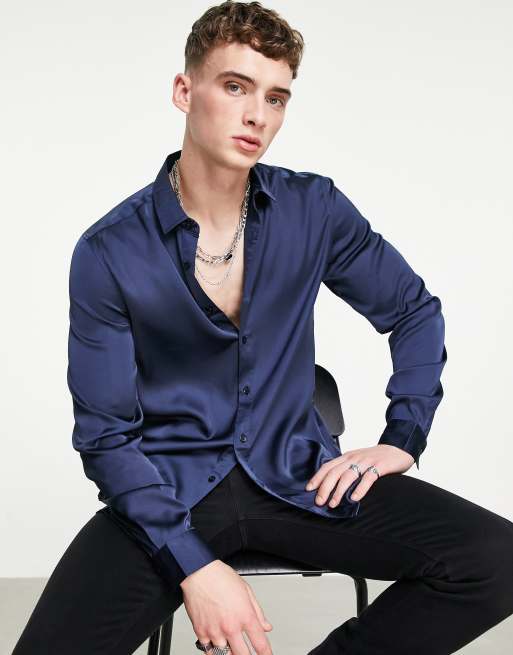 ASOS DESIGN - Satijnen overhemd in marineblauw