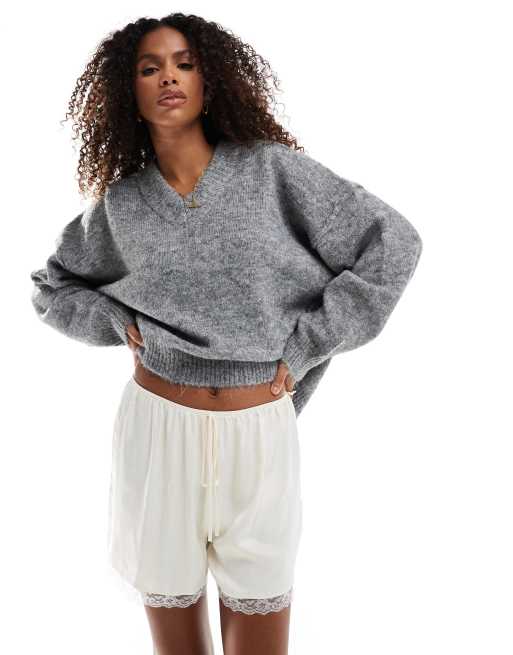 ASOS DESIGN - Satijnen zoom met kanten zoom in crème