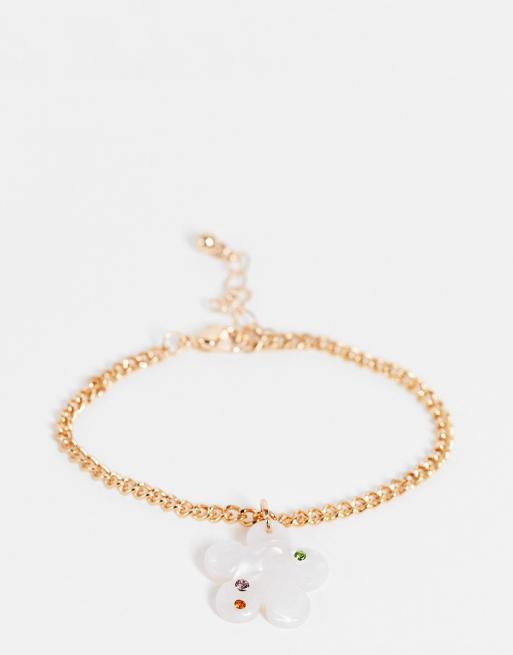 ASOS DESIGN - Schakelarmband in goud met bloem met kristallen