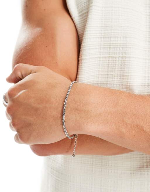 ASOS DESIGN - Schakelarmband met touwontwerp van waterbestendig roestvrij staal in zilver
