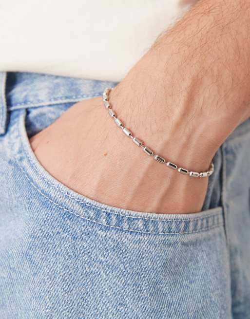 ASOS DESIGN - Schakelarmband van waterbestendig roestvrij staal met ovalen bal in zilver