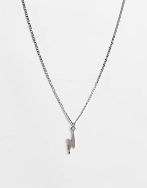 ASOS DESIGN - Schakelketting van waterbestendig roestvrij staal met 3D hangertje met bliksemschicht in zilverkleur