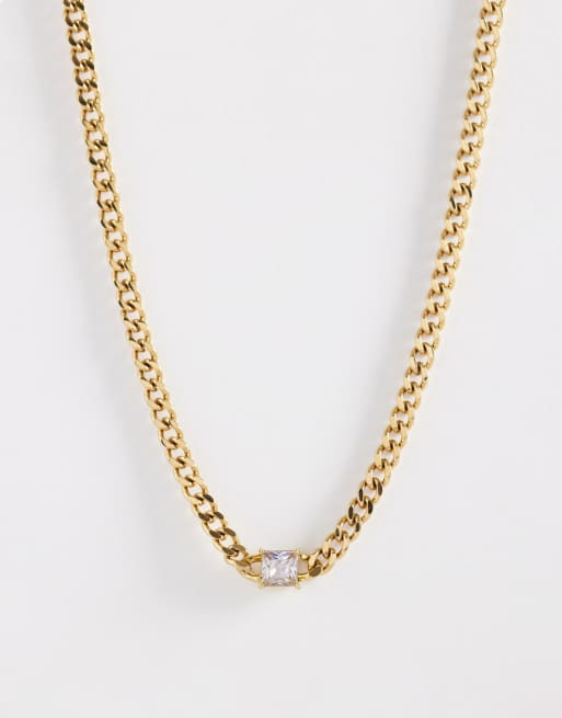 ASOS DESIGN - Schakelketting van waterbestendig roestvrij staal met zirkonia steentjes in goud