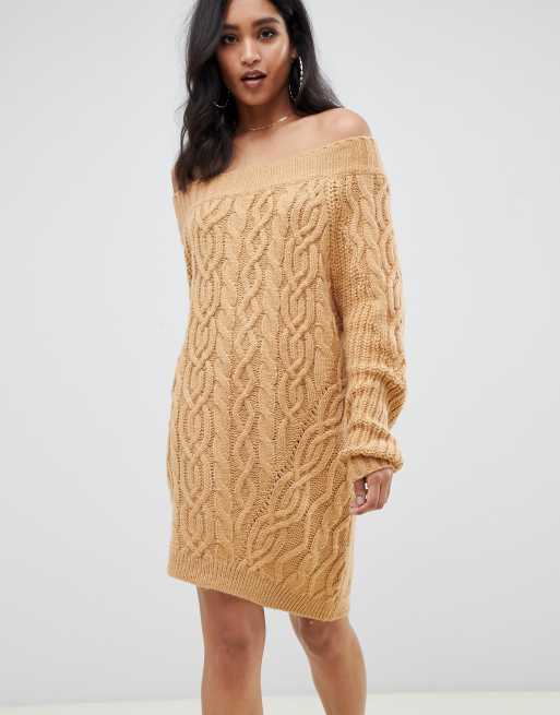 ASOS Design - Schouderloze geribbelde mini-jurk met kabels