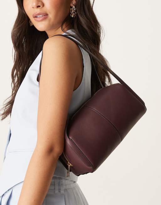 ASOS DESIGN - Schoudertas in bowler-stijl met textuur in bordeauxrood