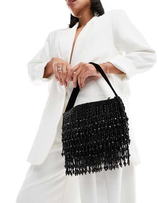 ASOS DESIGN - Schoudertas met kralen en kwastjes in zwart