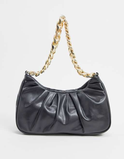 ASOS DESIGN - Schoudertas met rimpeleffect en brede gouden ketting in zwart