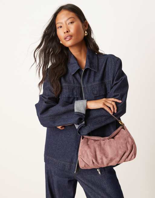 ASOS DESIGN - Schoudertas van imitatiesuède met flap in mauve