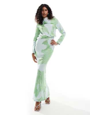 ASOS DESIGN - Schuingesneden maxi jurk met lange mouwen en ingestopt detail in gebloemde burn-outprint