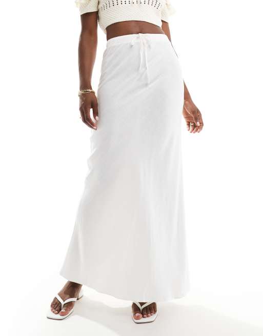 ASOS DESIGN - Schuingesneden maxirok met linnenlook en gestrikte taille in wit