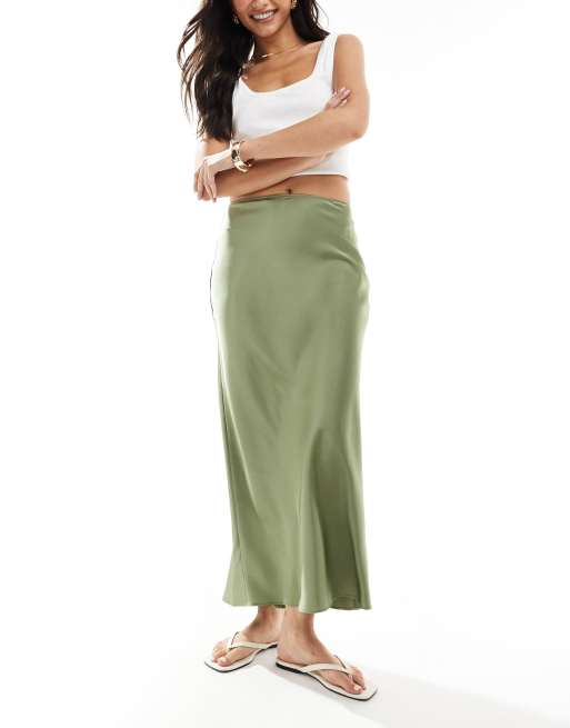 ASOS DESIGN - Schuingesneden satijnen midi rok in kaki