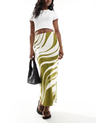 ASOS DESIGN - Schuingesneden satijnen midi rok met groene strepen