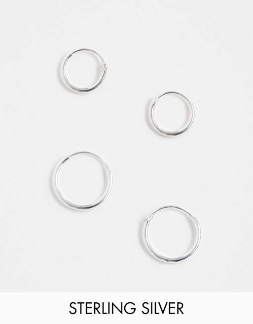 ASOS DESIGN - Set oorbellen van sterling zilver met ringen van 12mm en 9mm in zilver
