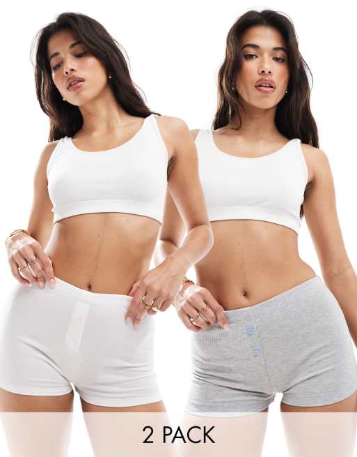 ASOS DESIGN - Set van 2 boxershorts met contrasterende stiksels in wit en grijs
