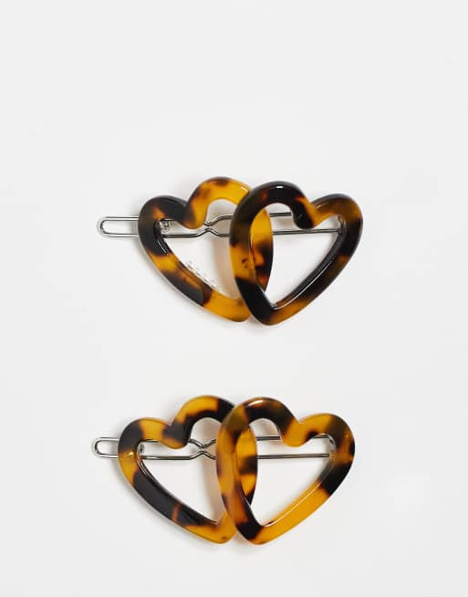 ASOS DESIGN - Set van 2 haarclips met hart in bruin en tortoise