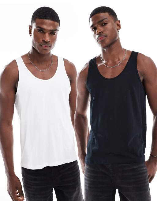 ASOS DESIGN - Set van 2 hemdjes in zwart en wit