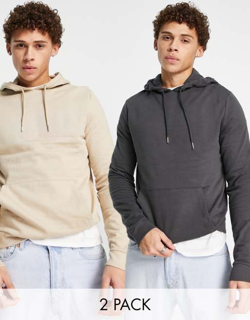 ASOS DESIGN - Set van 2 hoodies in beige en verwassen zwart