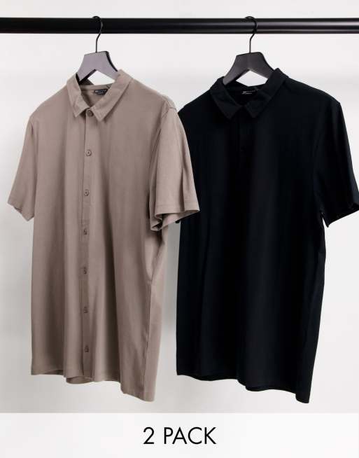 ASOS DESIGN - Set van 2 jersey overhemden in zwart en bruin