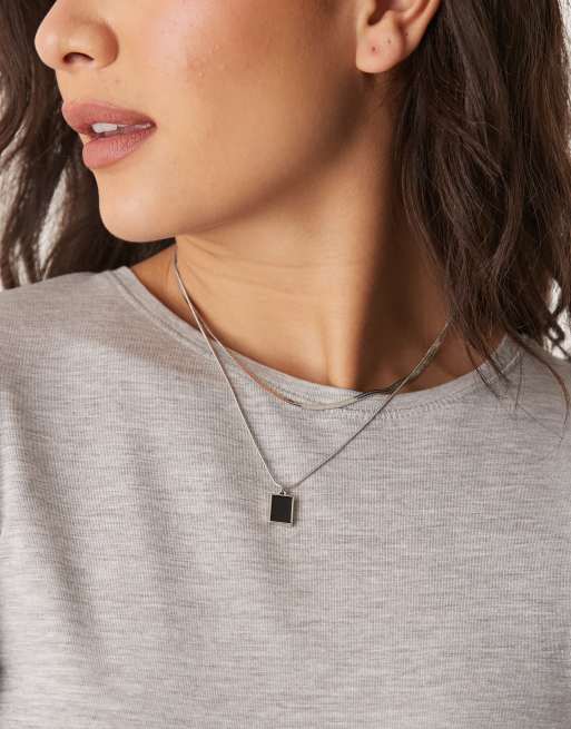 ASOS DESIGN - Set van 2 kettingen met slangenketting en hangertje met email in zilverkleur