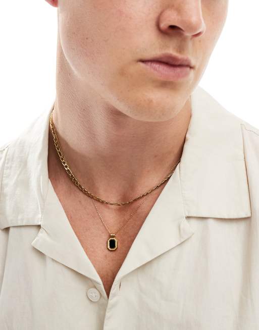 ASOS DESIGN - Set van 2 kettingen van waterdicht roestvrij staal met zwarte steen in goudkleur