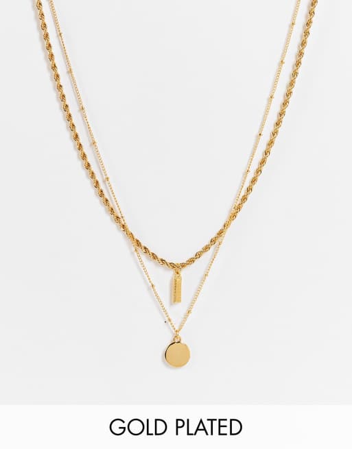 ASOS DESIGN - Set van 2 met 14k goud vergulde kettingen met staafje en ronde hanger