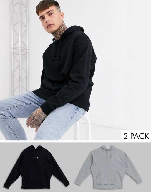 ASOS DESIGN - Set van 2 oversized hoodies in zwart / gemêleerd grijs