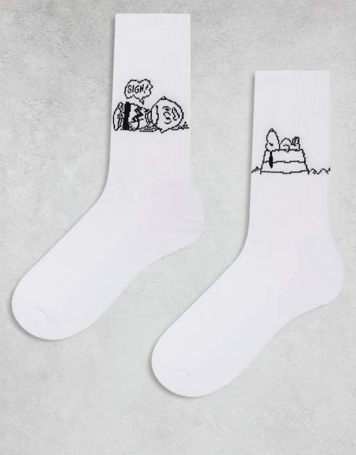ASOS DESIGN - Set van 2 paar sokken met print in wit