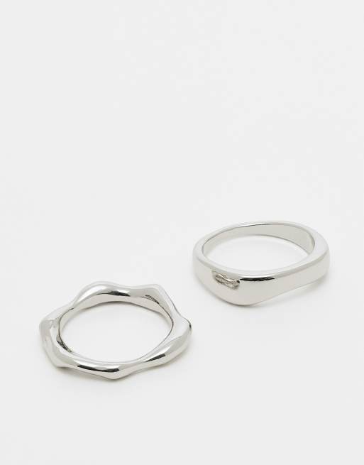 ASOS DESIGN - Set van 2 ringen in gesmolten zilver