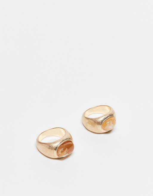 ASOS DESIGN - Set van 2 ringen met siersteentjes in geborstelde goudkleur