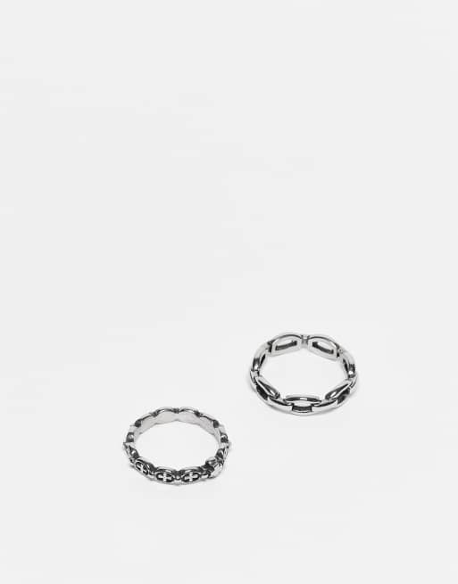 ASOS DESIGN - Set van 2 ringen van waterbestendig roestvrij staal met ketting en kruisjes in gepolijst zilver