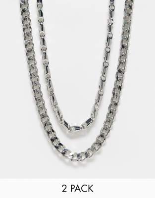 ASOS DESIGN - Set van 2 schakelkettingen met gemengde schakels in zilverkleur