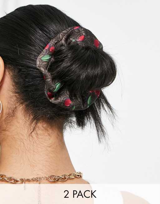 ASOS DESIGN - Set van 2 scrunchies in groen en met monogram- en kersenprint