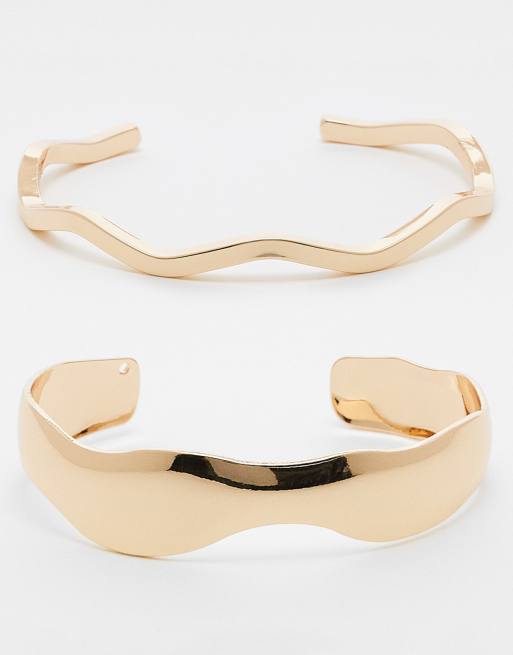 ASOS DESIGN - Set van 2 simpele brede armbanden in goudkleur