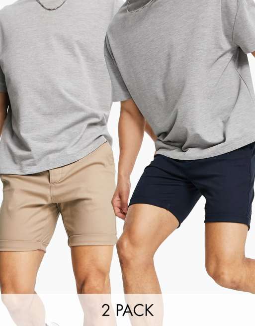 ASOS DESIGN - Set van 2 skinny chinoshorts in kiezelkleur & marineblauw VOORDEEL - MULTI