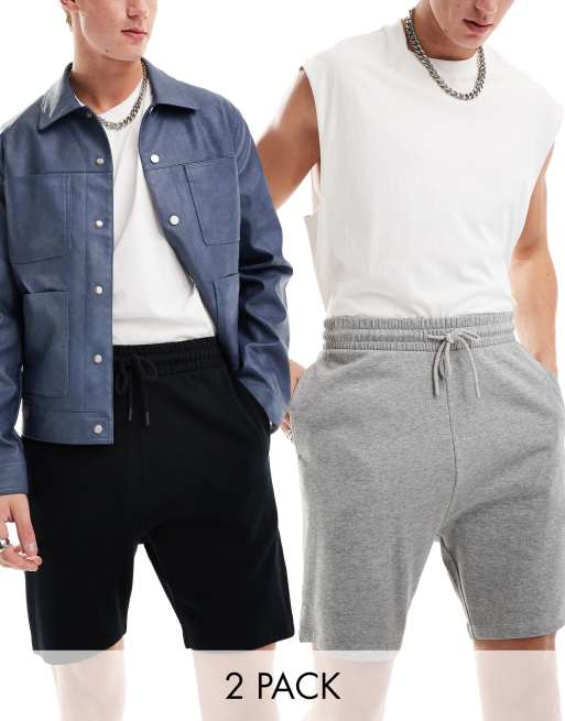 ASOS DESIGN - Set van 2 skinny shorts in zwart en gemêleerd grijs