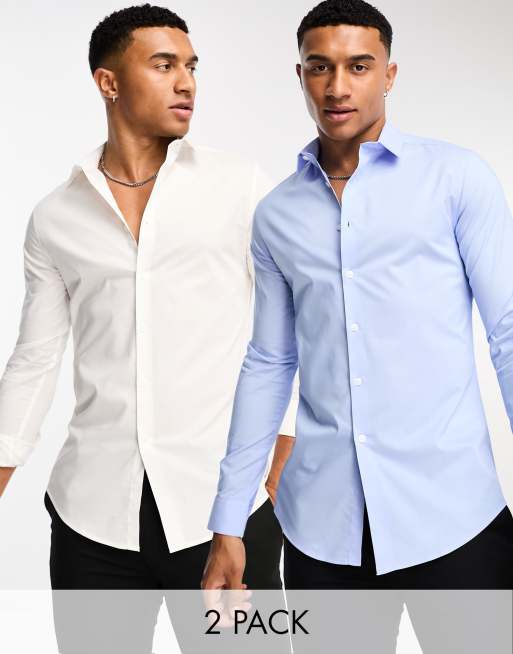 ASOS DESIGN - Set van 2 slim fit overhemden in wit/blauw