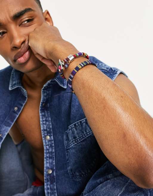 ASOS DESIGN - Set van 2 stoffen armbandjes met kleurrijk patroon