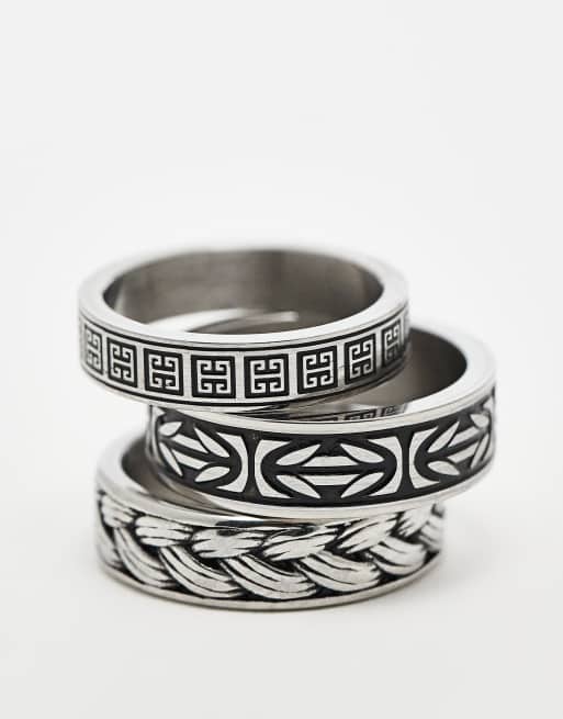 ASOS DESIGN - Set van 3 bandringen van waterbestendig roestvrij staal met gepolijst ontwerp in zilver