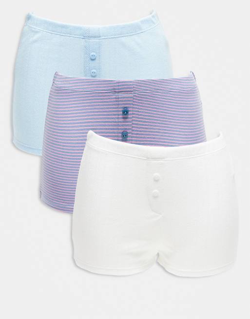 ASOS DESIGN - Set van 3 boxershorts van pointelle in blauw en paars met strepen