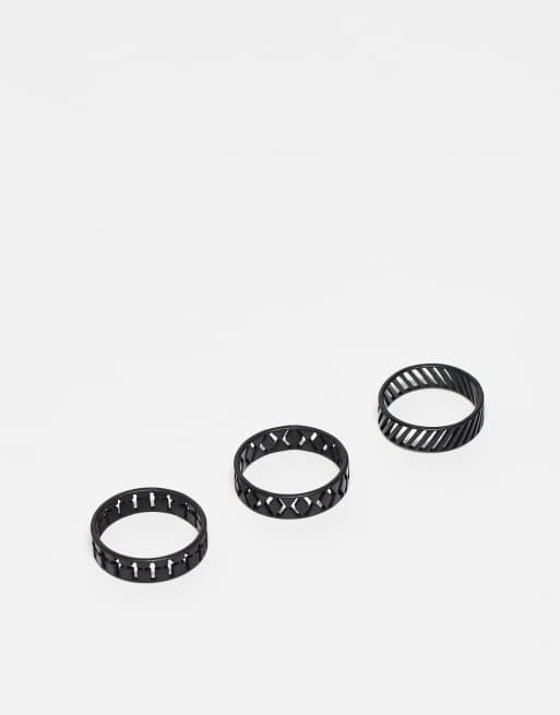 ASOS DESIGN - Set van 3 brede ringen met uitsnijdingen en kruisjes in matzwarte kleur