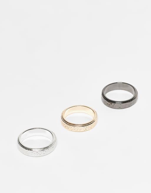 ASOS DESIGN - Set van 3 gehamerde ringen met textuur in multi