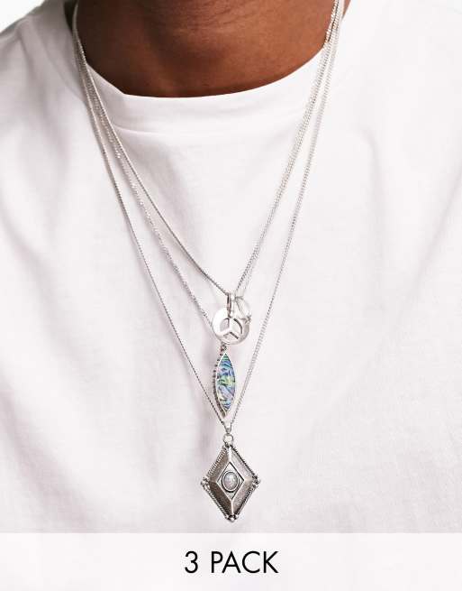 ASOS DESIGN - Set van 3 gelaagde kettingen met peace-teken en hangertje met siersteen in zilverkleur