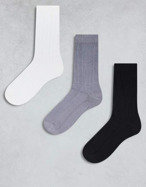 ASOS DESIGN - Set van 3 geribbelde sokken in verschillende kleuren