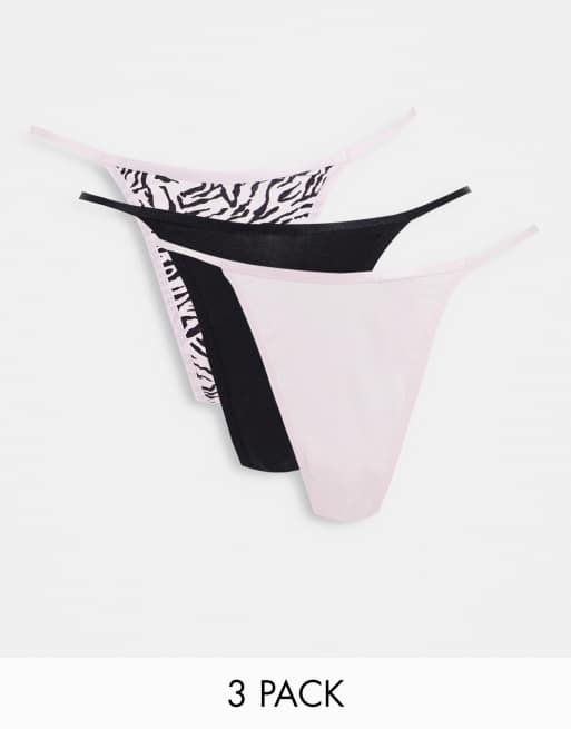 ASOS DESIGN - Set van 3 katoenen tangastrings met zebraprint