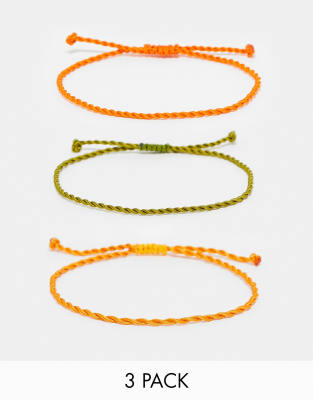 ASOS DESIGN - Set van 3 koord-armbanden in oranje en groen