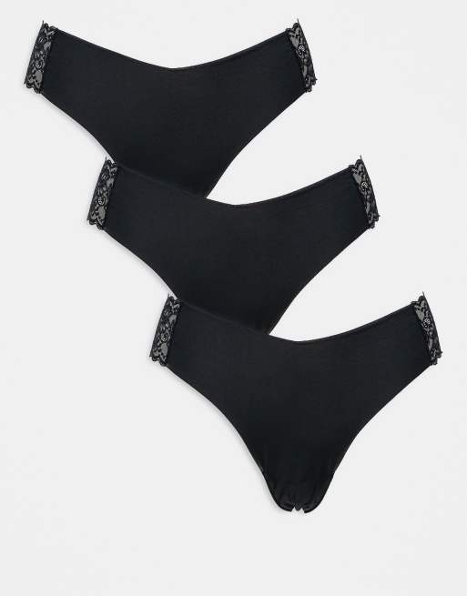 ASOS DESIGN - Set van 3 onzichtbare strings met kant aan de zijkant in zwart