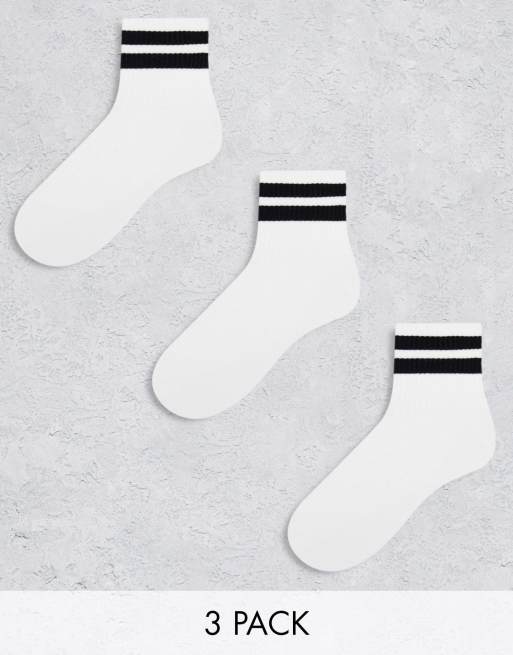 ASOS DESIGN - Set van 3 paar enkelsokken van badstof in wit met strepen