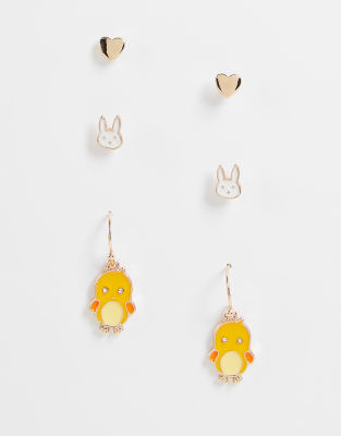ASOS DESIGN - Set van 3 paar lente-oorbellen in goudkleur