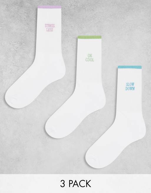 ASOS DESIGN - Set van 3 paar sokken met contrast en slogan in wit