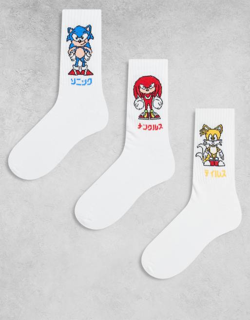 ASOS DESIGN - Set van 3 paar sokken met Sonic-print in wit